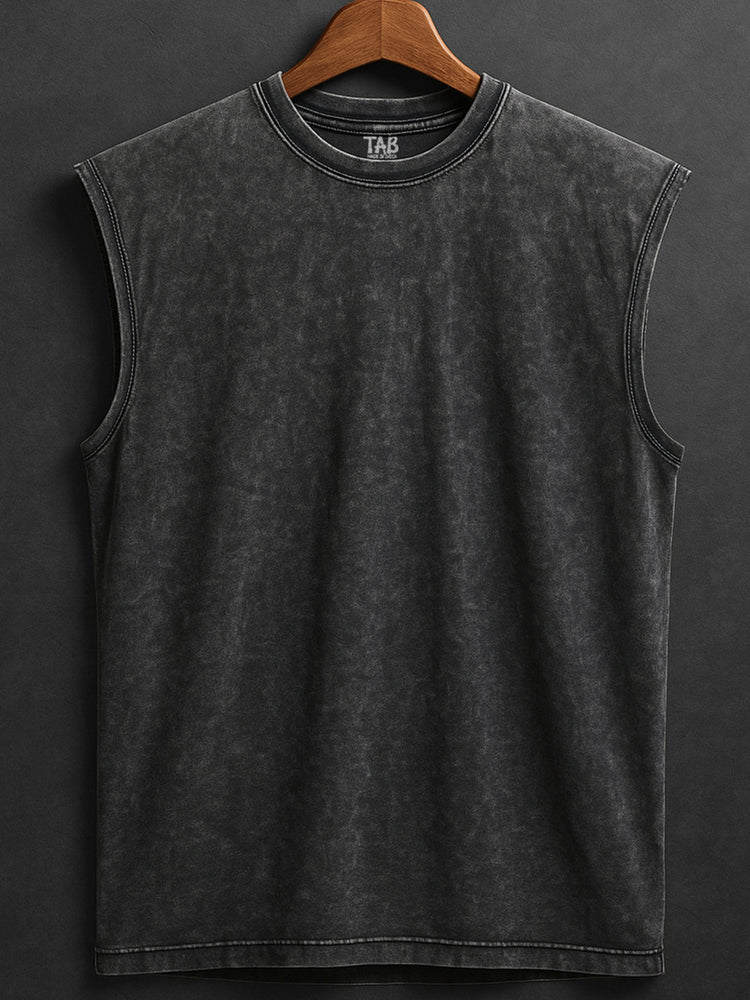 ACID WASH SLEEVELESS PRINTED VEST#24